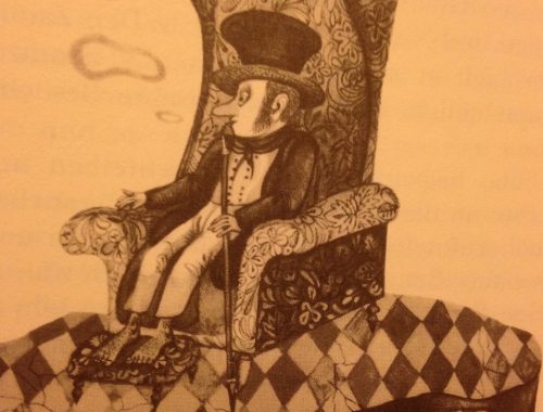 Oh look, there’s a conjugation of “faire”! “Fit” as the third person, past tense of same. The interesting part here for me is that it’s used in this sentence: “— Hum ! fit le Grand Gobelin.” I.e., “fit” is used as a dialogue tag, where I usually see “dit”. I’ll need to check with French speakers to see if this is common usage at all, or if it is more of a sense of “the great goblin made a hum noise” rather than “the great goblin said ‘um!'”