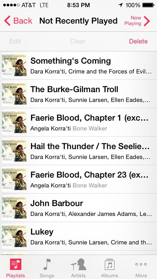Lastly, let me finish up by noting that I’m also very close to having the Bone Walker manuscript ready to release to proofreading. I need to put the sample chapter of Faerie Blood into the back of it, and I have ALSO gotten permission from Carina Press to cross-promote my Carina books in the back of the book as well. So I need to do that work.