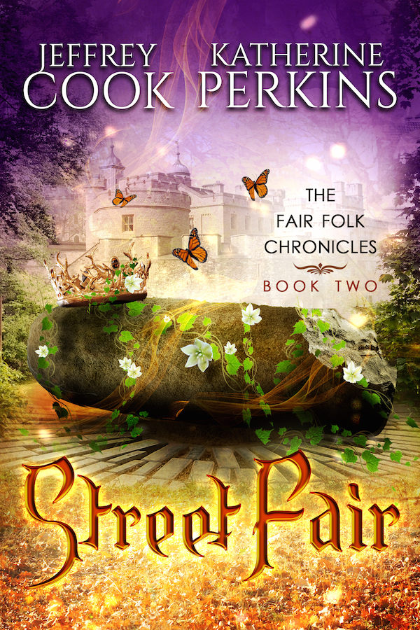 Today’s third Boosting the Signal catchup post features another pair of previous guests: the writing team of Jeffrey Cook and Katherine Perkins! They’re on hand to bring you an excerpt from Book 2 of their Fair Folk Chronicles–a series which, since this book’s release, has gone on to include a Book 3 as well! In this short excerpt from Street Fair, two characters have a very basic goal before them: figure out how to get past a barrier. Without exploding. As you do.